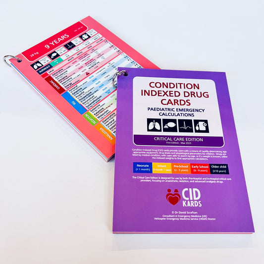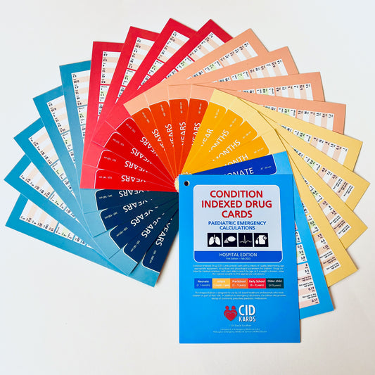 CID Cards is a trusted name in emergency care, delivering rapid, reliable, and precise information at your fingertips. Our expertly designed cards empower healthcare professionals with instant access to age-appropriate drug doses, equipment sizes, and vital parameters - ensuring swift, confident decisions for both paediatric and adult patients.